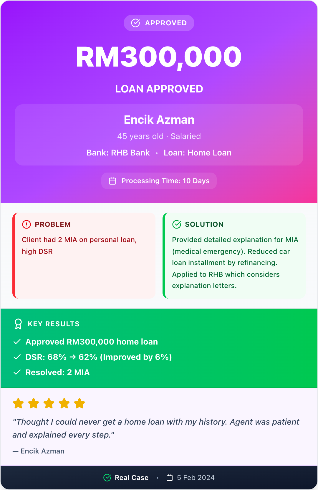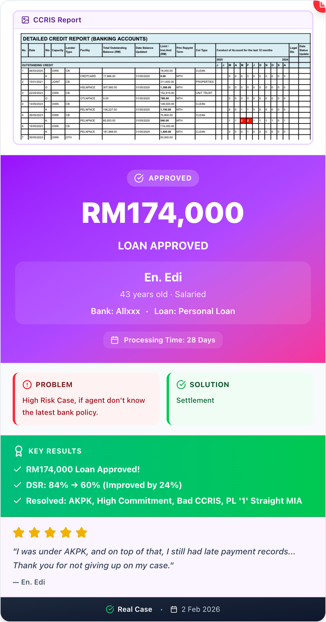 For those seeking bank loan advisory services in Malaysia, through our professional loan consultancy services, we will streamline the process, ensure fast loan approvals and clarity every step of the way. Our devoted team has meticulously crafted a platform designed for simplicity, empowering you to make well-informed decisions about banking products. Your journey to financial clarity and success starts with us.